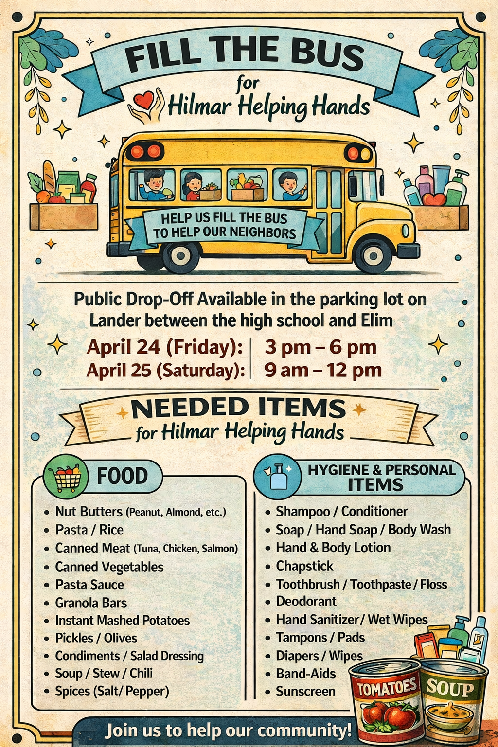 Public Drop-Off is available in the parking lot between the High School and Elim Elementary on these days:April 24th - 3pm to 6pmApril 25th - 9am to 12pmSee the flyer below for more information.